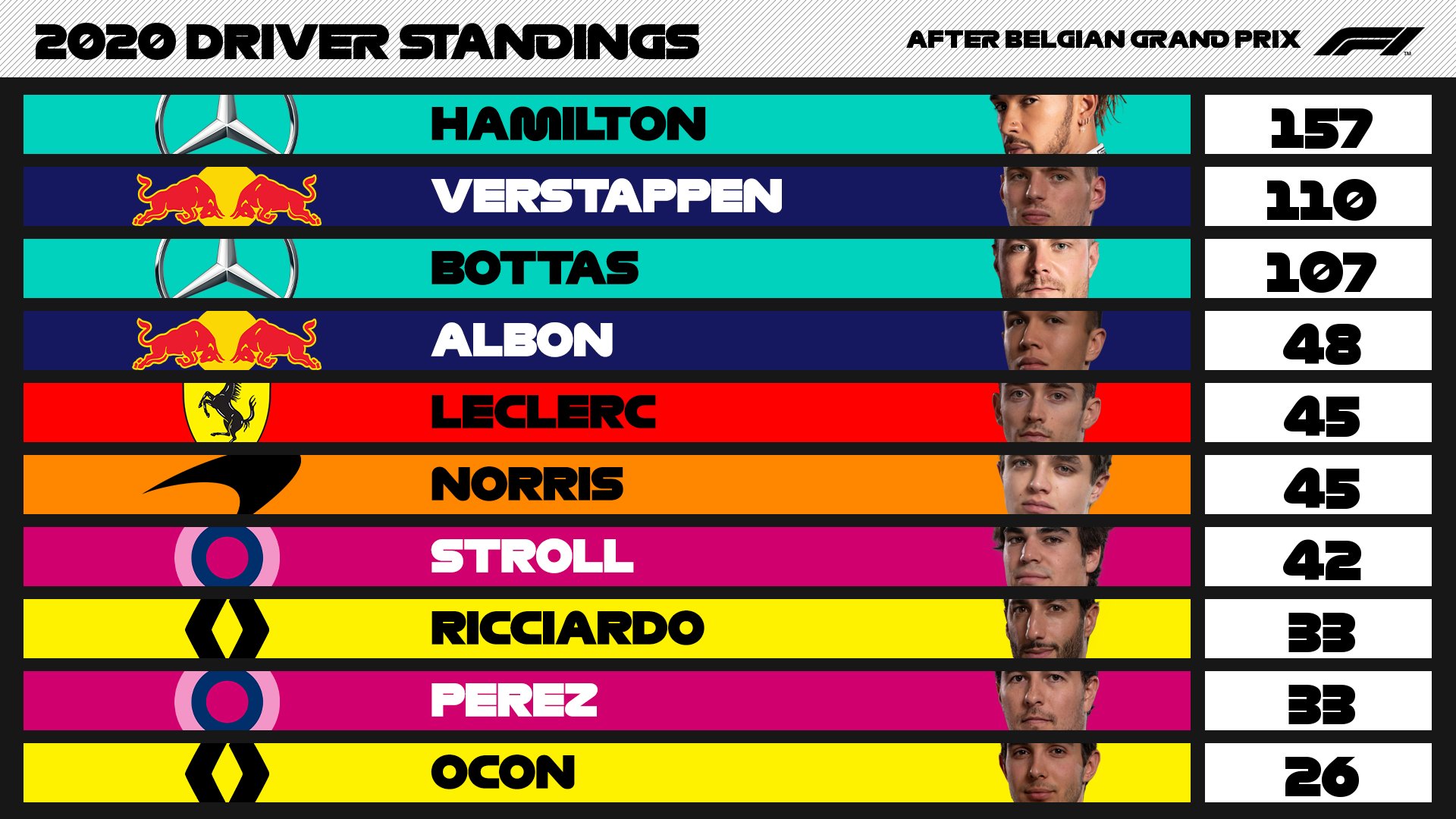 Circuit De Barcelona Catalunya On Twitter F1 Drivers Classification After The Belgiangp Nice Fight For The Second Place Verstappen Or Bottas F1